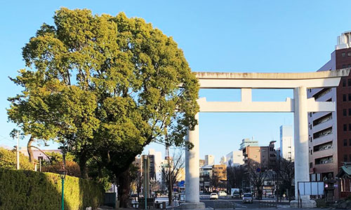 中心街で交通のアクセスも良く、買い物にも便利な場所にある照國神社。